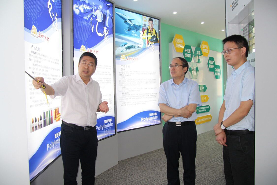 姚正軍一行先后參觀了奧神新材料公司展廳和生產線,詳細了解了生產運營、后道產品開發及應用等情況,對公司近年來取得的發展成效給予了肯定,希望奧神新材料繼續堅持科技興企、創新強企的理念,加大人才培養和研發力度,打造更多的“拳頭產品”,為連云港市高性能纖維行業的發展貢獻力量。
