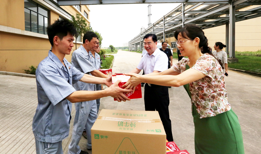 炎炎夏日送清涼,點滴關愛暖人心。連日來,驕陽似火,酷暑難耐。718-20日,集團公司領導楊龍、胡建明、張其海、朱天松、戴鴻鳴、汪群、匡友本等輕車簡從,分赴基層一線,進車間、入工地、到灘(田)頭,慰問在高溫下堅守崗位的廣大員工,送去綠豆、白糖等防暑降溫品,在炎炎夏日中將“清涼”送到職工心坎上。