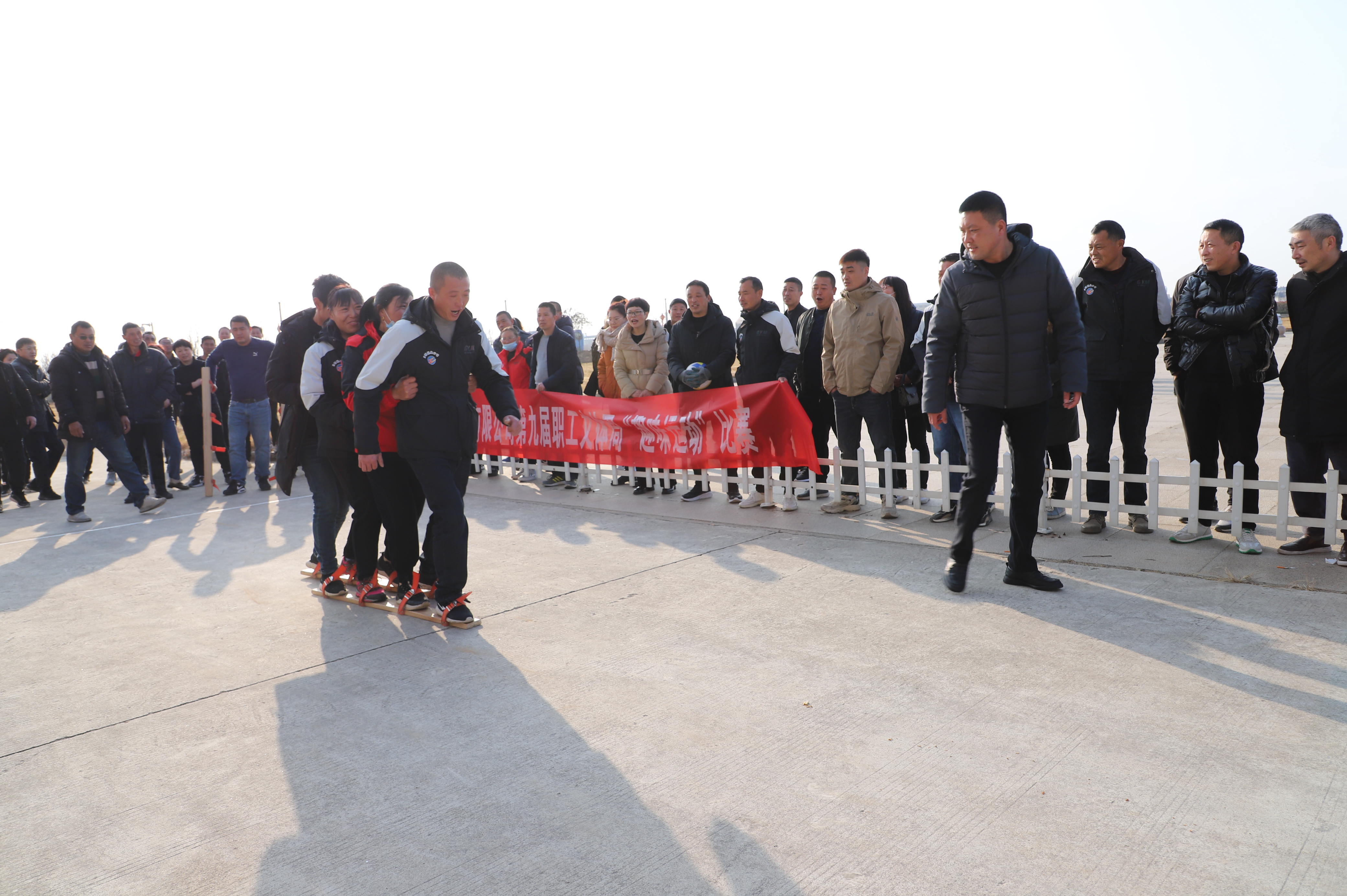 12月23日上午,投資公司第九屆職工文體周趣味運動比賽在機關大樓廣場開賽,公司各單位組織十支隊伍參加比賽,考驗著各參賽隊選手之間配合與協調性。缺少默契的隊伍,沒走幾步就人仰馬翻,反觀配合默契的隊伍一往直前,奔向終點。新河制鹽分公司代表隊隊員的運動鞋被同伴踩掉,依然沒有放棄比賽,赤著一只腳完成了比賽,充分體現了團隊精神,也充分展示了灌西職工的良好精神風貌。