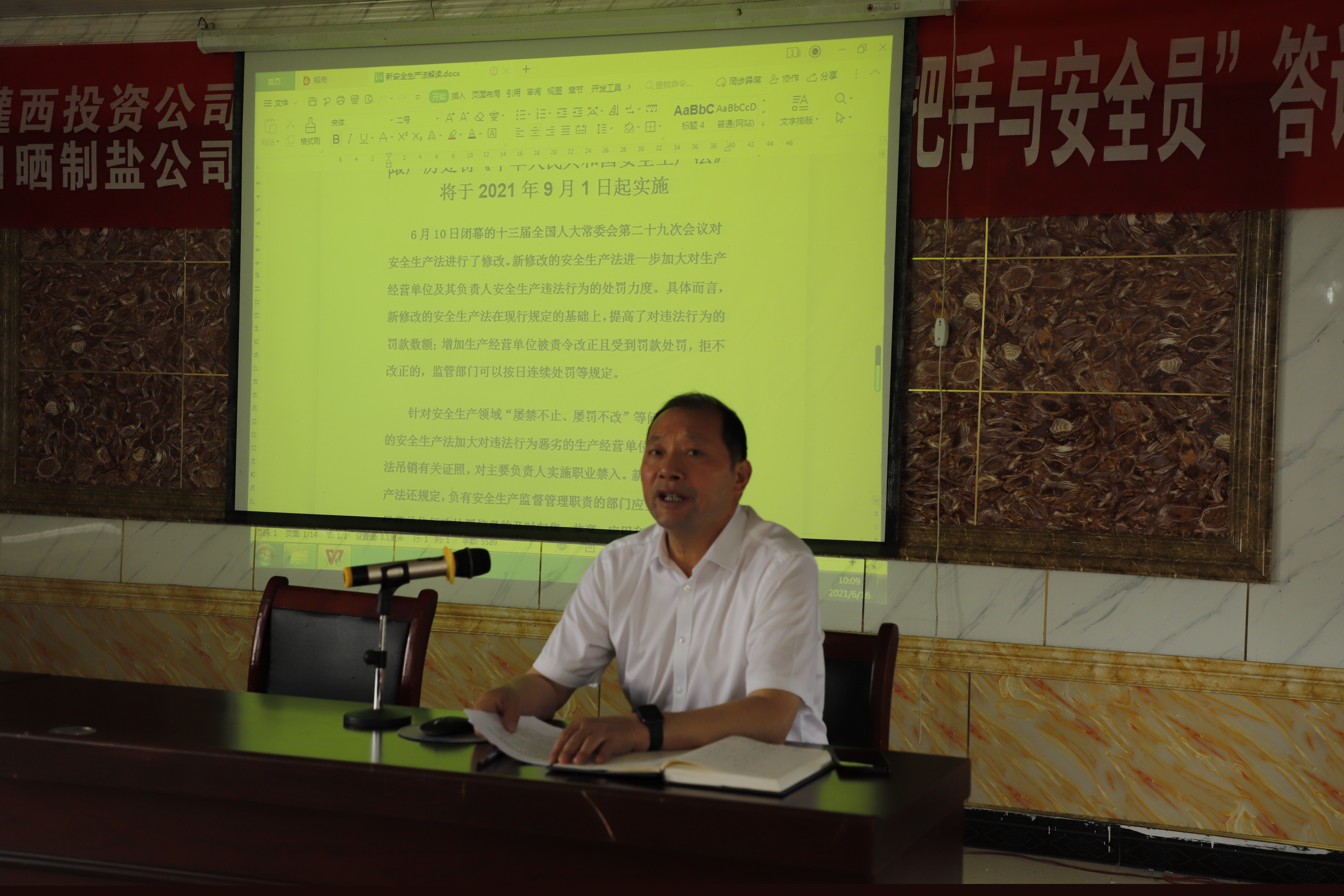 6月16日,灌西投資公司在生產服務公司召開“6.16”安全宣傳日暨“一把手與安全員”答詢會,黨委書記、董事長、總經理李國文,常務副總經理吳衛平,黨委副書記、工會主席王宏,公司安委會成員、各單位主要負責人、分管安全領導及班組長參會,工會主席王宏主持會議。