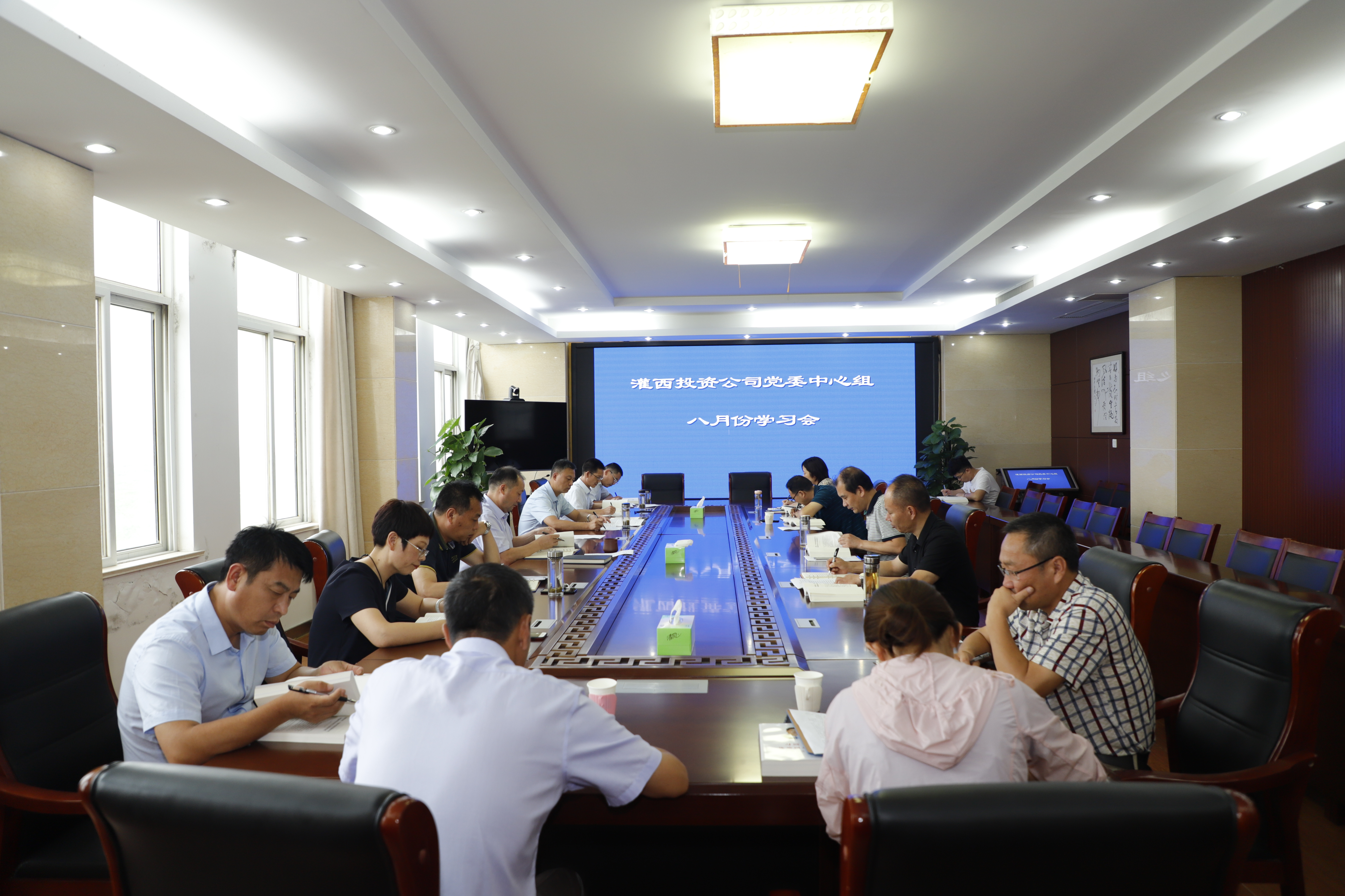 8月26日下午,灌西投資公司黨委召開中心組理論學習會,集中學習研討《習近平談治國理政》第三卷。公司領導班子成員參加學習會。