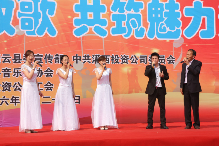 灌云縣委傳部副部長、文聯主席孫成軍、音協主席吳平、集團公司工會副主席李嵐琴,灌西投資公司領導班子成員以及來自公司各條戰線的廣大職工和群眾近千人一同觀看了演出。演出前,投資公司黨委副書記、總經理李國文作了熱情洋溢的致詞。