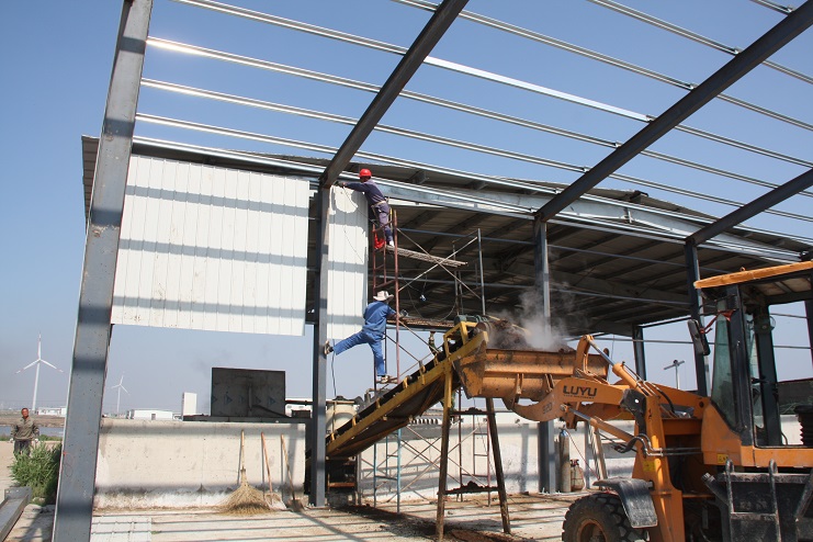 5月18日,位于北北歐農莊生豬養殖廠旁邊的綠淮肥業公司有機肥生產基地,一個鋼結構廠房即將完工,只見機聲轟鳴、焊花飛濺,機電服務公司的工人在勞模王緒華帶領下正在焊接鋼結構件,而正在建設施工中的廠房內,兩條有機肥生產線運轉不停,沒有因廠房建設而停產,廠房旁邊的一臺挖掘機正在整平場地,一邊建設,不邊生產,一派紅火景象。
