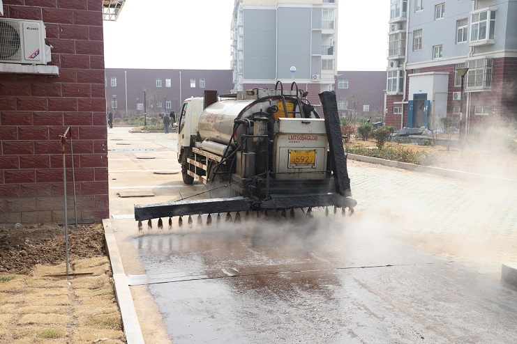 在工程現場,機械轟鳴聲吸引了小區內眾多居民駐足觀看,他們親歷著小區的舊貌換新顏。施工中,噴淋式灑油車首先在路面上灑上一層油,隨后,冒著熱氣的瀝青從工程車上緩緩“淌”入瀝青混凝土攤鋪機,接著雙鋼輪震動壓路機、輪胎式壓路機依次上場,轉眼間,原來的水泥路面上就鋪上了平整的瀝青,再配合上去年完成的小區綠化工程,使小區的整個環境瞬間提高了一個檔次,不經意間還以為身處市區之中。