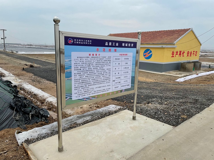 新河制鹽分公司零班,日曬制鹽有限公司“示范班組”,現有職工10人,男7人,女3人,于2012年12月1日建成投產,2018年實行“9+1”用工制,2020年試行“8+2”彈性用工制?,F隸屬日曬制鹽有限公司,主要從事工業鹽的生產,目前班組生產面積27公頃,灌池24塊1440公畝,年產鹽量2萬噸,主要利用淮安地區豐富的地下礦鹵資源,創新制鹽生產模式,節約土地資源,降低成本,擴大產能,實現高質量、高產出、高效益、低本低碳,節能環保。