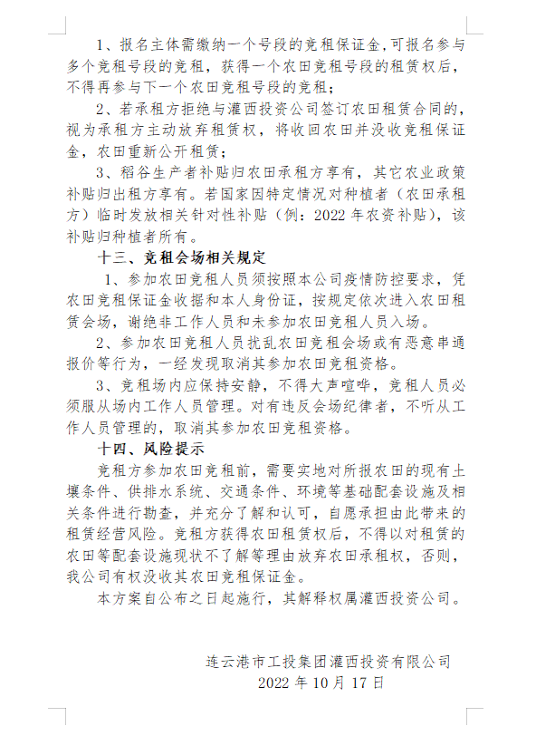 2022年灌西投資公司八十四萬農田公開競租公告