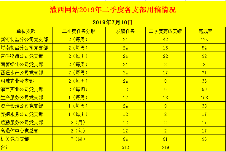 灌西網站2019年二季度各支部用稿情況