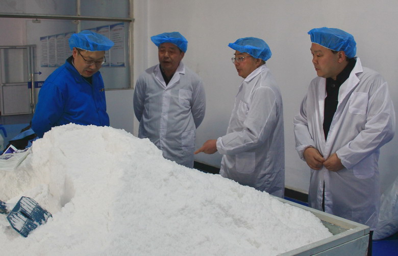 戴書記一行先后參觀了雪花鹽車間、包裝鹽車間、加工鹽車間生產現場,了解了公司近期的生產經營情況。在隨后召開的座談會上,朱書記匯報了貫徹落實集團黨委工作會議精神、2019年度黨建特色工作思路及安排等重點工作。