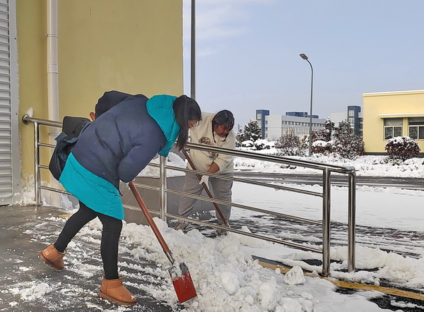 在做好本車間單位“門前三包”掃雪除冰工作的同時,公司員工沒有“自掃門前雪”,積極發揚志愿服務精神,切實履行社會職責,還清除了周邊廠區外非機動車道上的積雪積冰。