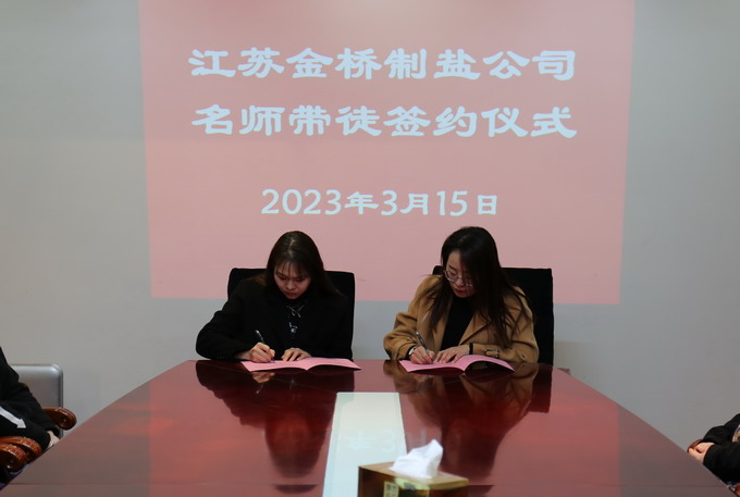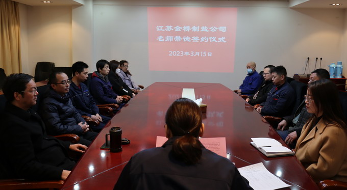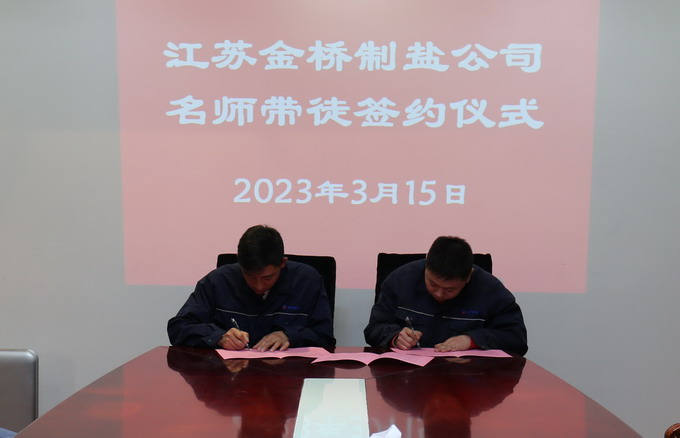3月15日上午,金橋制鹽公司在二樓會議室舉行“名師帶徒”活動簽約儀式。公司黨委副書記、紀委書記、工會主席曹開明出席活動,結對人員參加活動。