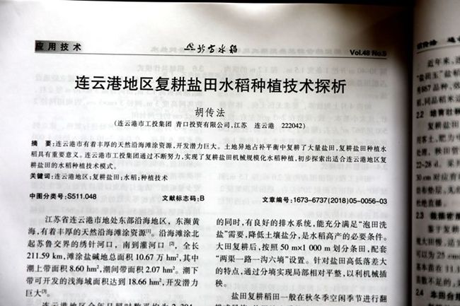 《北方水稻》是遼寧省農墾局主管,遼寧省鹽堿地利用研究所主辦的國家發行的公開期刊。該公司所總結出來的鹽堿地種植水稻技術得到專業認可,為全連云港的復耕鹽田水稻種植打開理論新高度。 (顧 益)