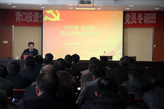 為加強黨員干部廉潔教育,提高拒腐防變意識,2月27日下午,青口公司邀請市紀委監委、第八紀檢監察室主任梁浩作了題為《守紀律 講規矩 筑牢思想道德防線》的專題報告,公司領導班子成員和全體在崗黨員參加此次講座,紀委書記史祥平主持。