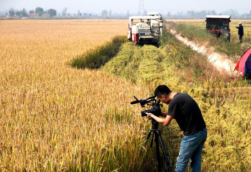 攝制組在市勞模劉英軍沙光魚養殖基地和房入超池塘,拍攝蛙鉤和沙光魚捕撈現場,攝制人員專業認真,每一個畫面和構畫都精心策劃。有特寫,有近景、有解說,有專訪,并來到大新農場鹽田玉牌“富硒海水稻”收割現場實地拍攝。此次央視對我公司的深入報道,體現的青口公司作為市級層面沙光魚產業化基地和“鹽田玉”品牌在全市的認可,將進一步加深對沙光魚養殖和鹽田玉大米品牌宣傳推介。