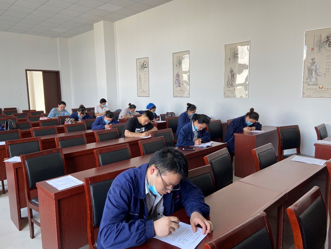 截至527日,生產設備部3個生產班組已全部順利完成后紡作業培訓,進入后紡操作技能筆試階段。(圖為527日上午,生產丙班后紡員工參加后紡操作技能筆試考核。)