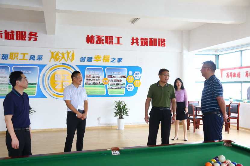 92日集團公司工會來臺北公司開展工會工作專題調研。集團領導劉承志帶隊,調研組一行首先來到臨達公司,參觀職工建家工作開展情況。劉主席對職工文體活動、文體設施、困難幫扶等一一詢問,并對今后發展作出指導。