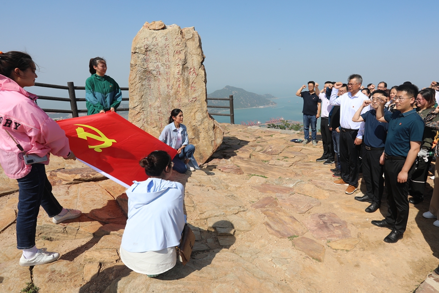 大家在桅尖口石碑前,仔細聆聽了工作人員講述了當年連云港港保衛戰的“一寸山河 一寸血”。隨后在曾經無數抗戰英雄拋頭顱灑熱血的地方,全體黨員重溫了入黨誓詞,向黨和英烈們許下的“謹記昔日舉國傷痛,不忘犧牲砥礪前行”的誓言。