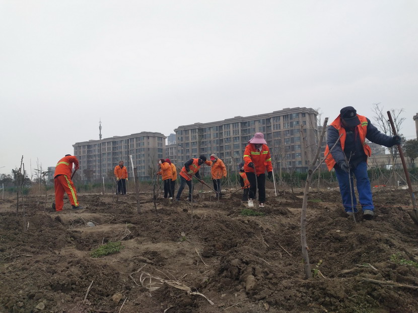 326日下午,陽光明媚,春風和煦,益豐園林分公司的苗圃養護班組正在進行一場緊鑼密鼓的作業。師傅們熟練地揮舞著鋤頭,計劃挖掘500余顆果樹苗,栽種在80畝苗圃基地,開始一段新的生命旅程。
