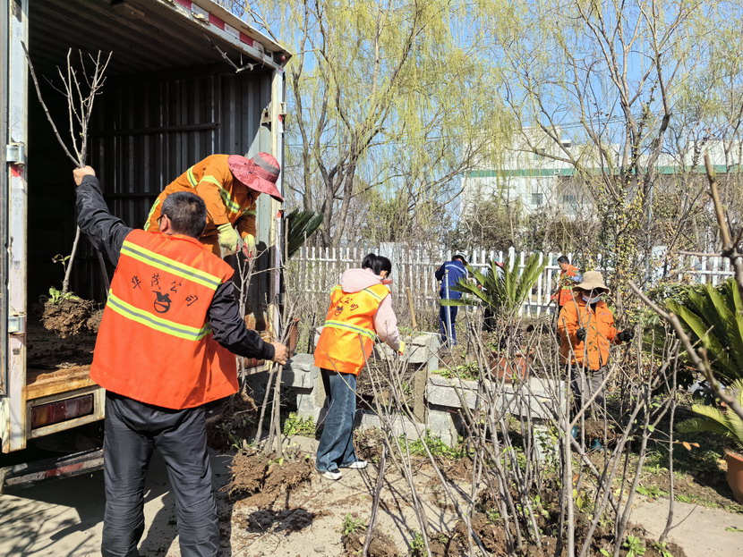 27日上午,當所有的果樹苗都運達80苗圃基地后,綠化分公司鼎力幫助,抽調20余名經驗豐富的能工巧匠,與苗圃養護班組共同投入到這場果樹苗栽種工作的熱潮中。他們仔細地將每顆果樹苗放置在預定的位置上,輕輕覆土,并用手壓實,確保土壤能夠充分包裹住樹根,為幼苗提供充足的養分和利于扎根生長的良好環境。在栽種完畢后,大家又忙碌地澆灌第一輪水肥。他們希望這些新栽種的果樹苗能夠得到充足的水分和營養,以快速恢復生長。