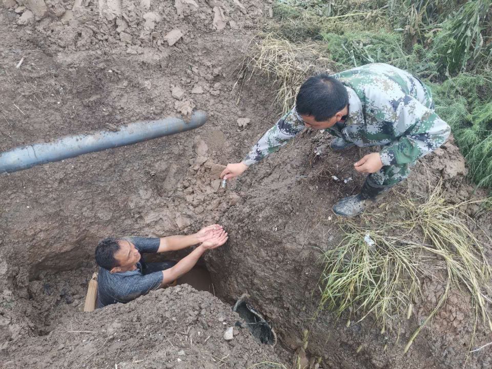 泵站是大浦工區的命脈,也是生存之源。泵站三人組席強余、喬效富、龔大春憑著敏銳的洞察力,迅速關掉閥門,帶上工具,立刻出發排查檢修輸鹵管道。由于昨夜突降暴雨,地面潮濕,給排查工作帶來了相當大的困難,三人組按照多年的工作經驗,當機立斷,分工分路段進行排查,與時間賽跑,早點找到損壞的管道就能減少鹵水的損失。經過三人精心細致的排查,徒步六公里,終于在臺北汽車城一處雜草叢生的區域發現了損壞的管道,此處管道是掩埋在泥土里面,修復起來難度更大,三人立即拿起鐵锨開挖,席強余顧不上管道溝里齊膝渾濁的雨水,穿著膠鞋就淌進溝里,坐騎在管道上,雙手伸進水里,嫻熟的進行修復。經過近兩個小時的維修,管道恢復正常供鹵,大程度減少了鹵水損失,為原鹽順利生產提供了堅強有力的保障。